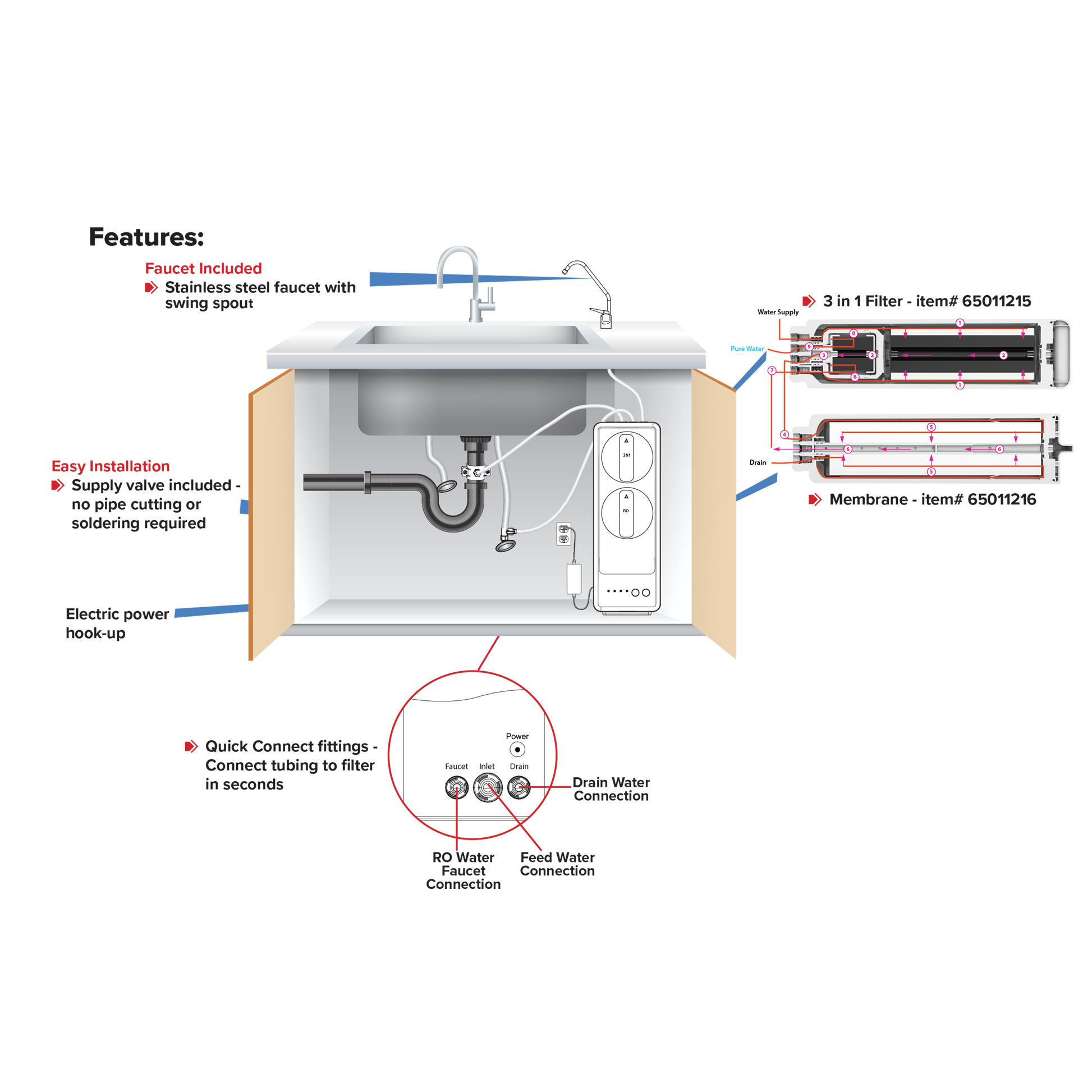 - High Efficiency: 2:1 Purified to Waste Water Ratio