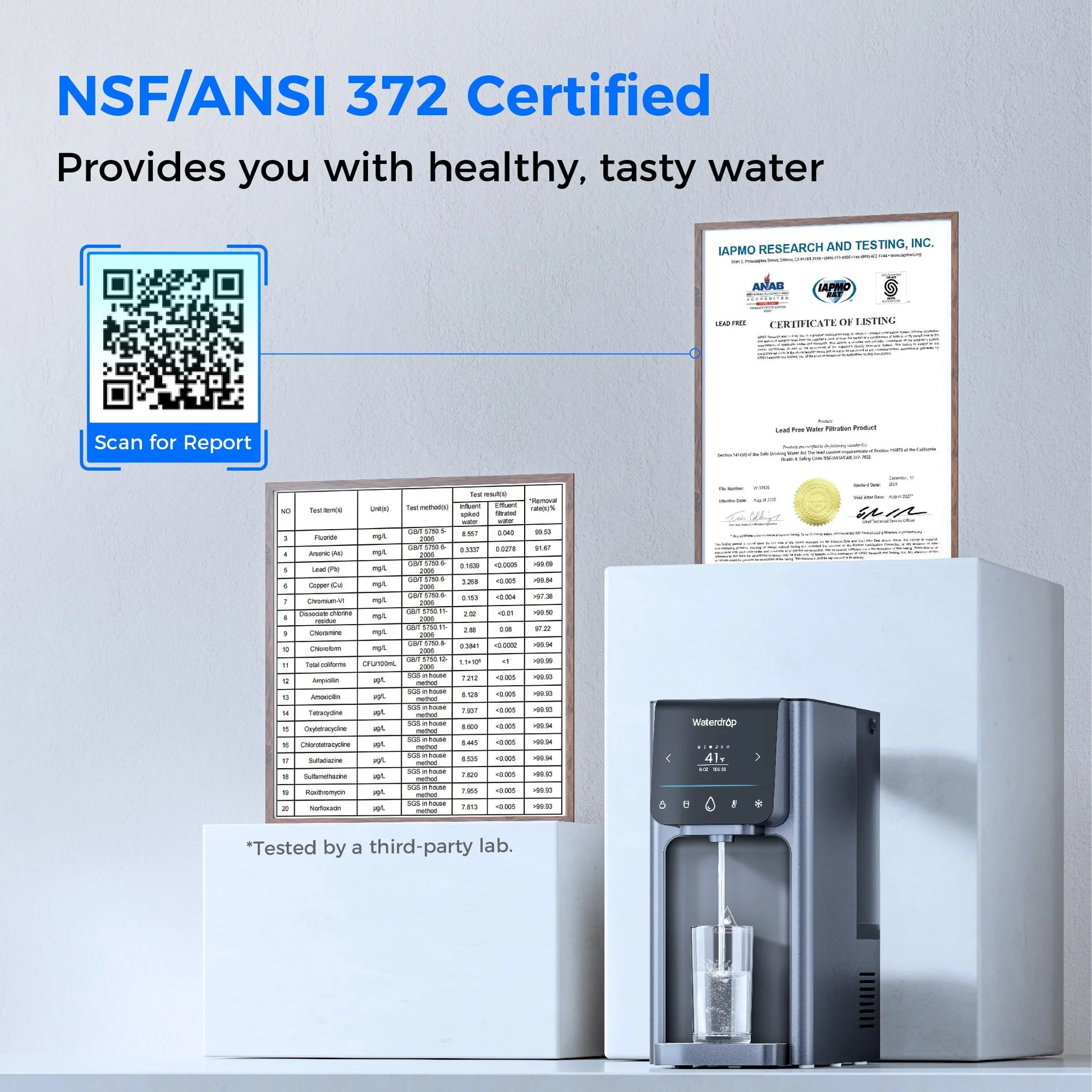 - 𝟕-𝐬𝐭𝐚𝐠𝐞 𝐅𝐢𝐥𝐭𝐫𝐚𝐭𝐢𝐨𝐧: This countertop RO system is passed official third-party laboratory (SGS) test according to NSF/ANSI 58&42 standard, effectively reduces TDS, Chrome, Chromium, Fluoride, Arsenic, Lead and PFAS, PFOA, PFOS, iron, radium, calcium, nitrate, chloride, and radioactive substances