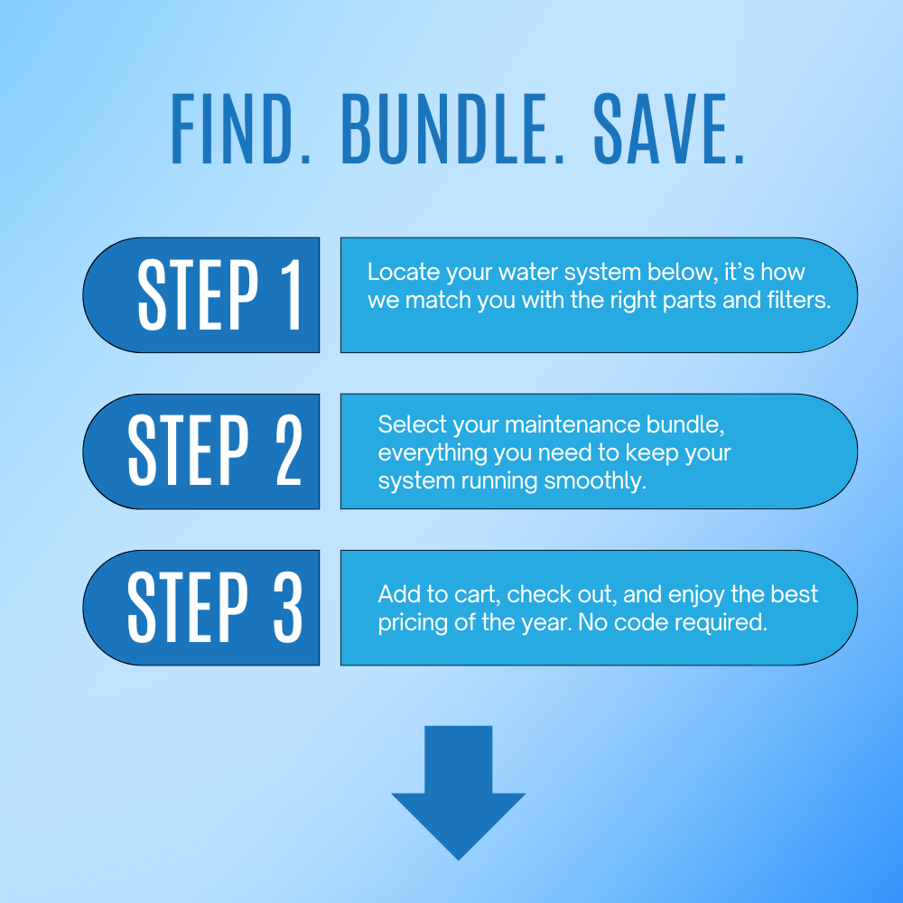 We are offering tiered discounts on custom water systems: 10% off one-stage, 15% off two-stage, and 20% off three or more stages.